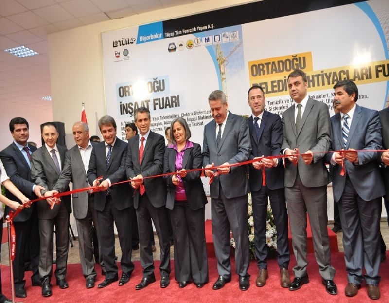 Middle East Construction and Municipal Needs Fair opened with a ceremony. Exhibition will be open until April 22. This year Saudi Arabia businessmen delegation joined to the fair with organization of Karacadağ Development Agency. The opening of the exhibition that includes 100 firms operating in building and construction sector carried out with participation of Diyarbakir Governor Mustafa Cahit Kıraç, Diyarbakır Metropolitan Mayor Gültan Kışanak and many guests.